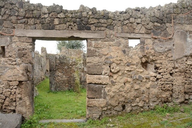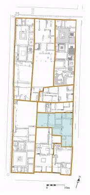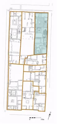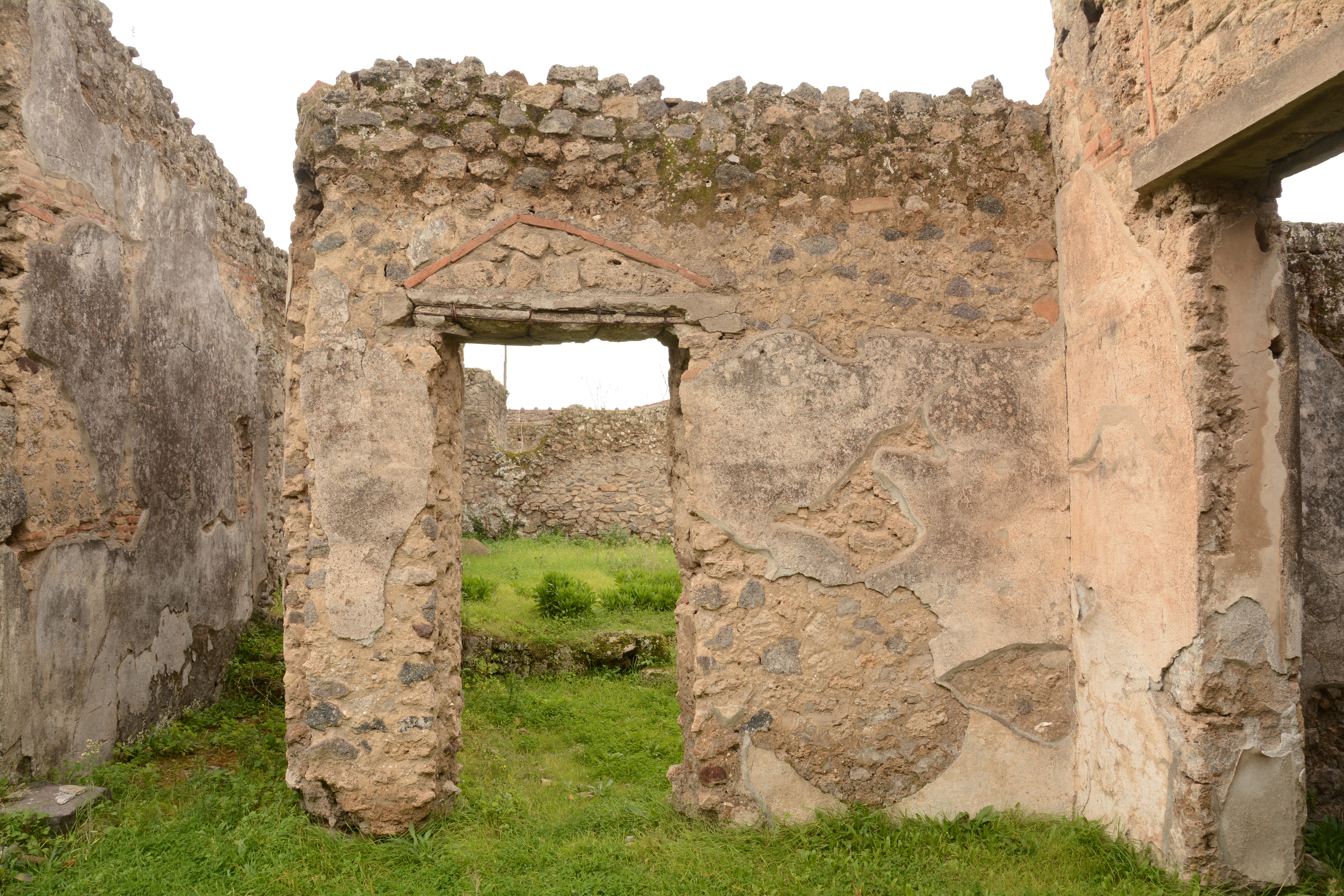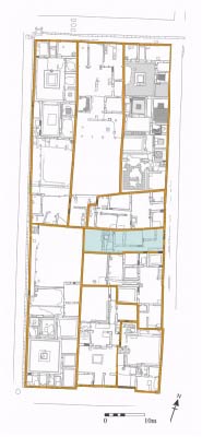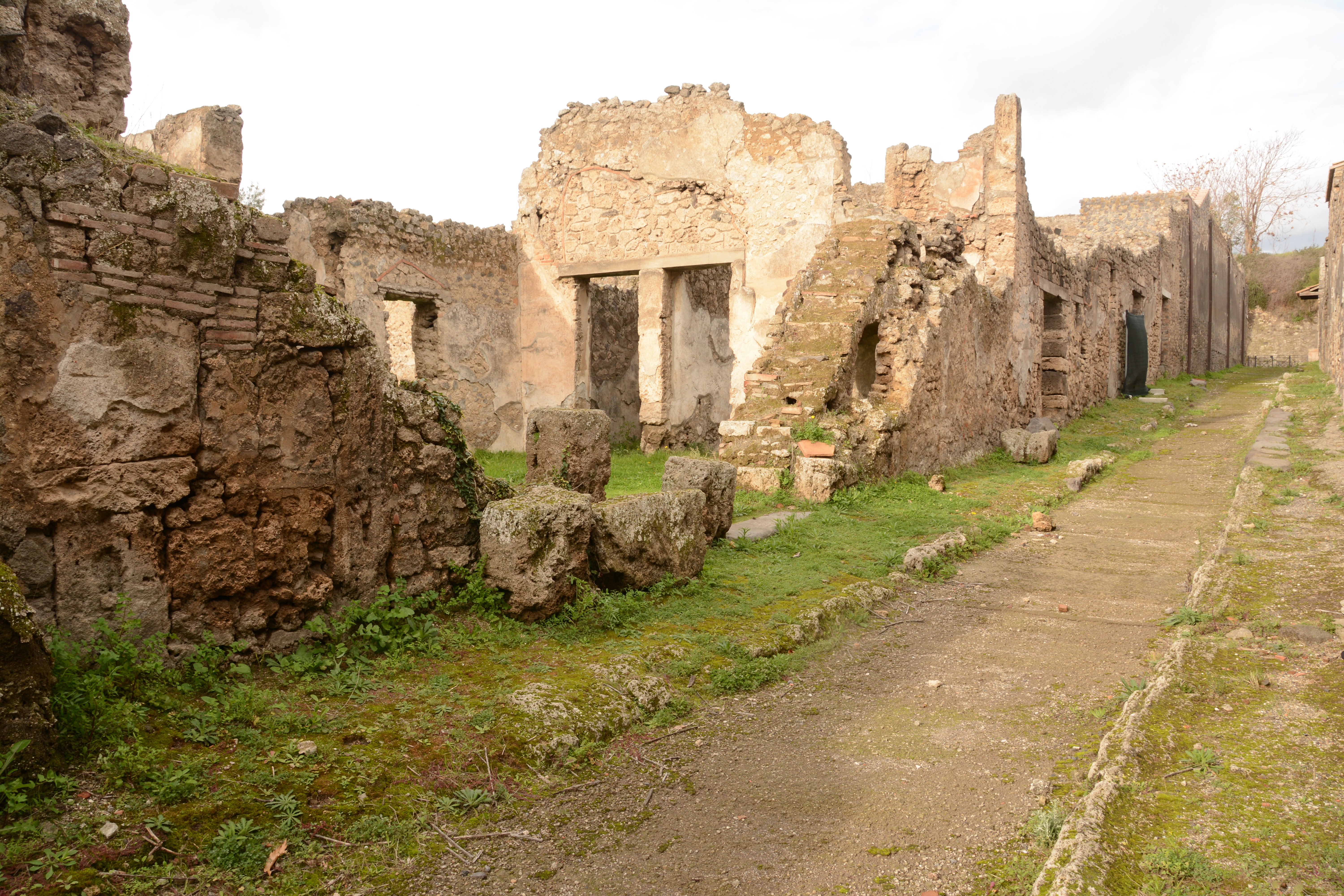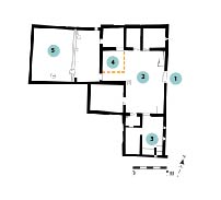 House 5 – often called the House of the Fruit Orchard due to its frescoes – is quite a grand house, although not overly large, with an adjoining shop at the front (1). The main entrance leads out onto the main street, the Via dell’ Abbondanza (Street of Abundance). The building had a second floor, one set of stairs to which are found in the small room at the front (3). There is a small 'porticoed' garden with columns on three sides (4).