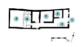 The entrance leads into the main room (atrium) (5) where guests would have been received. This room seems to have been simply decorated, and has an impluvium (pool to collect rainwater) in the centre (6).
