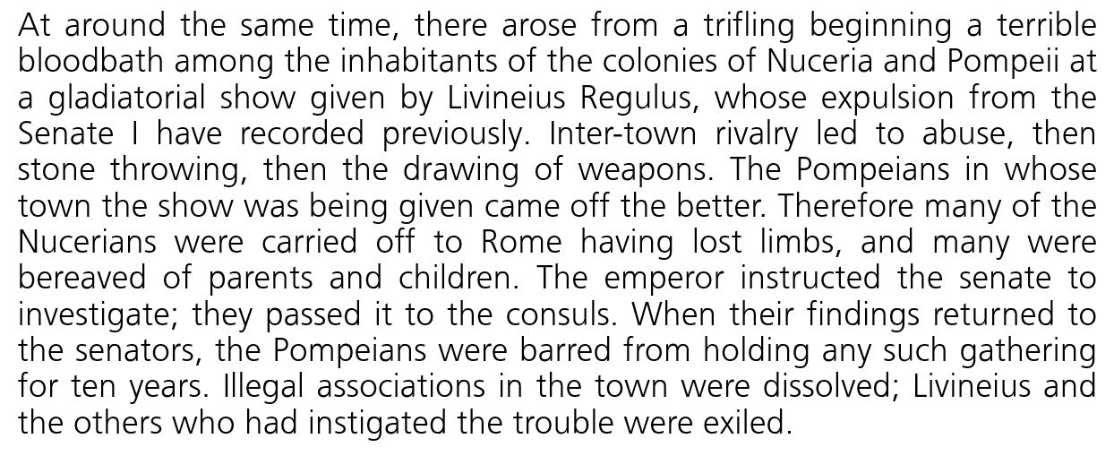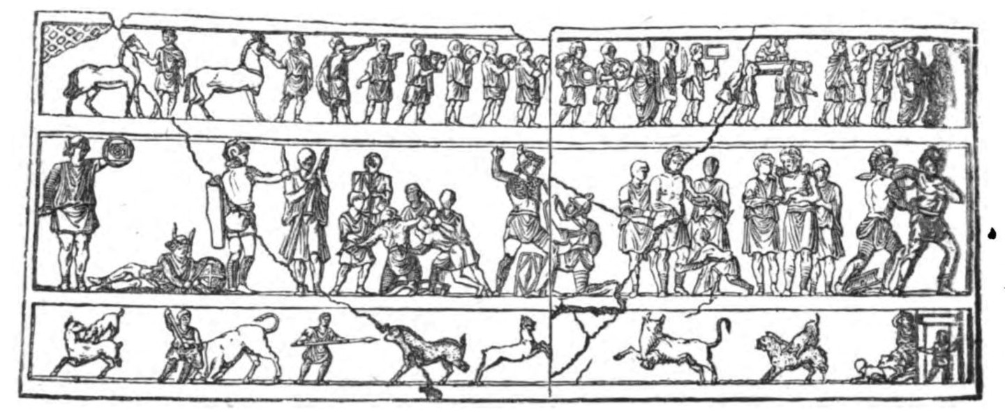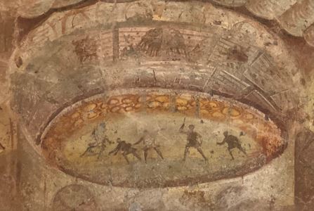 Romans often decorated their houses with events from mythology or history; perhaps the owner of this house chose a dramatic piece of local history to depict instead of the more usual myth or legend. It has been suggested that the owner of the house Actius Anicetus was himself an ex-Gladiator.