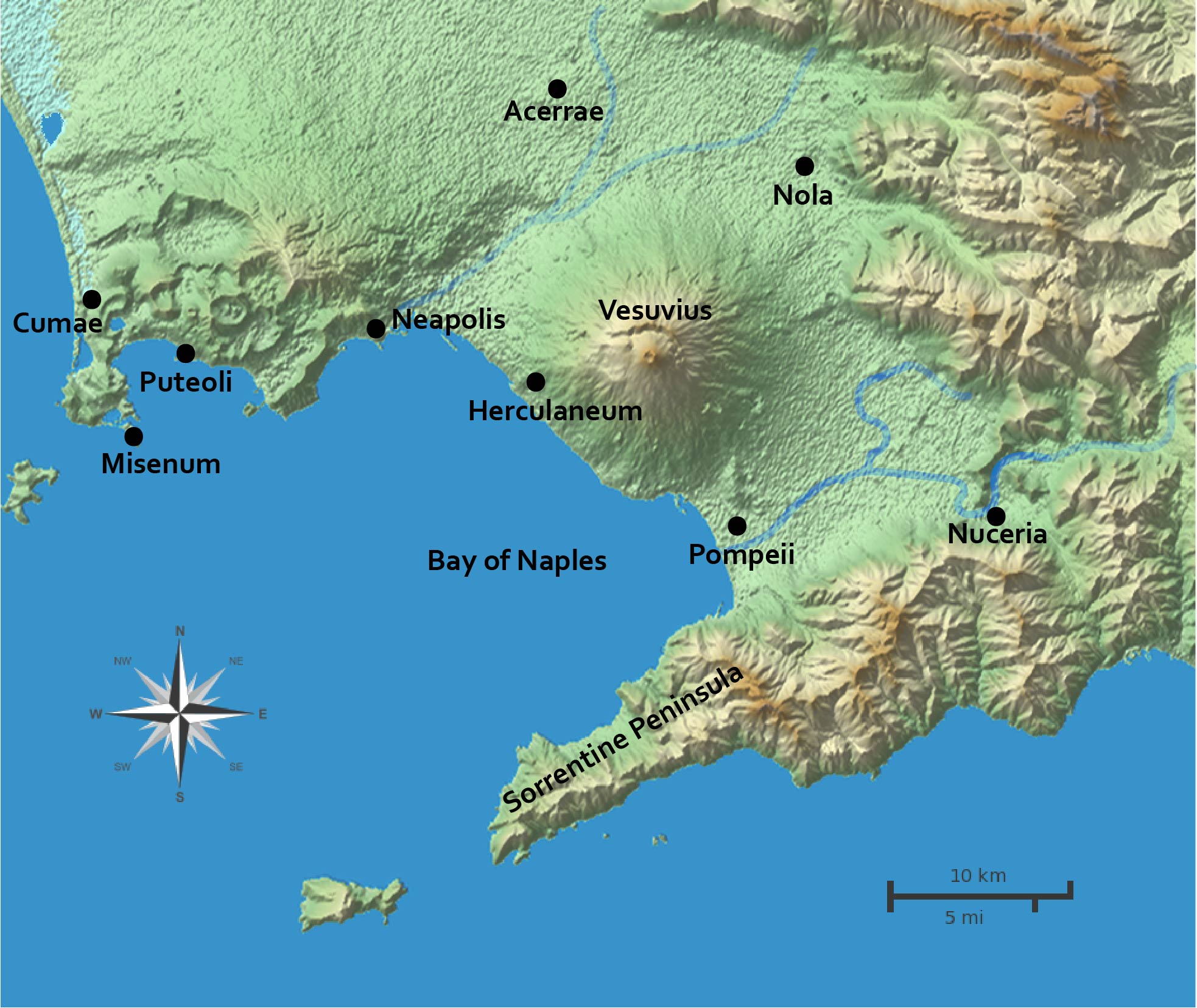 Pompeii was very well located for trade. The Bay of Naples had a number of good natural harbours, especially around Misenum. The nearby port of Puteoli was one of the most important in Rome. It was where products from all over Italy and the wider Empire came together for distribution. Naples, Cumae and Puteoli had strong connections with the Greek East, which was very useful to the other towns in the area as trading centres. Pompeii was also the entry point from the wider ocean to the Sarno river valley. It was at the crossroads of the coastal trade routes from Cumae to the Sorrentine Peninsula and the inland route along the river towards Nuceria, Acerrae and Nola.