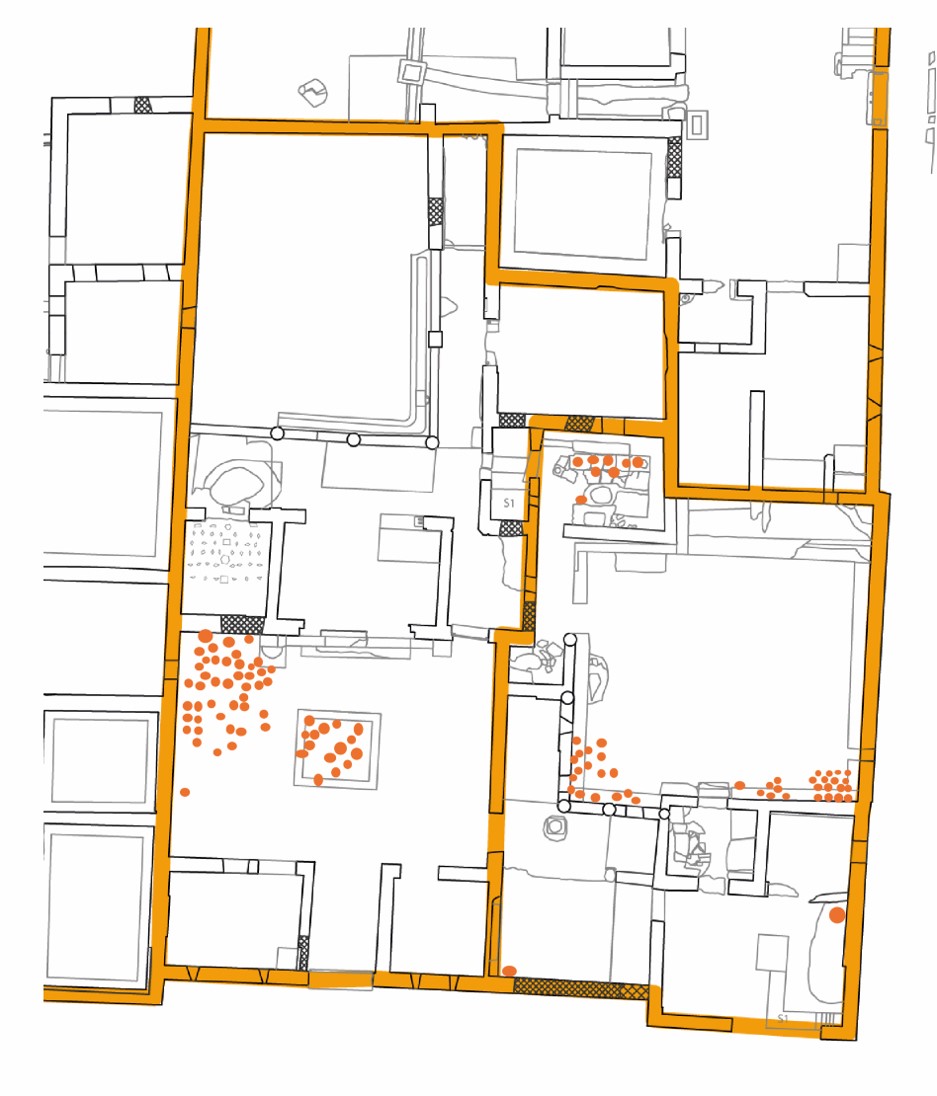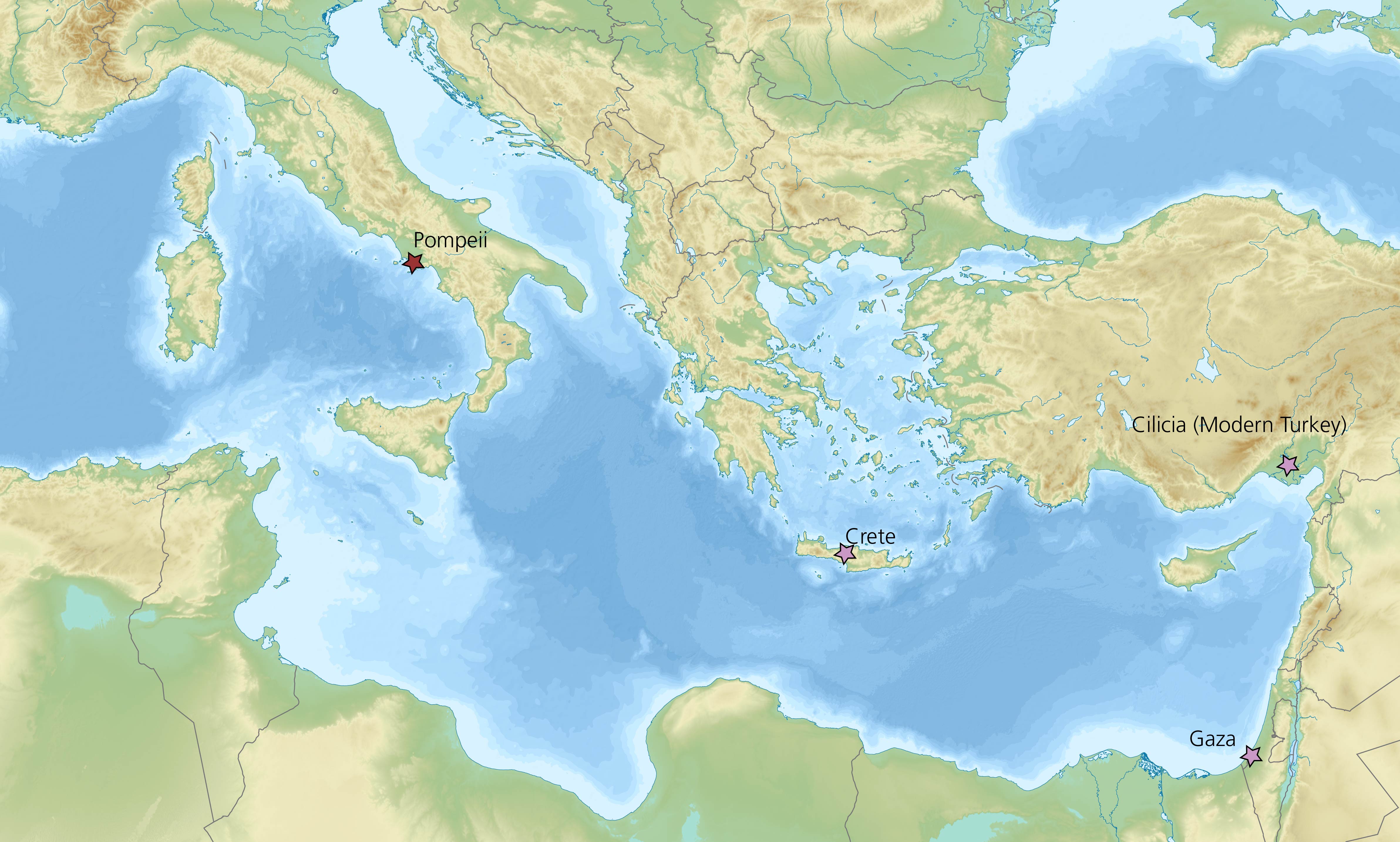 The amphorae are very useful in helping us to understand the trading networks that the bar tapped into. Amphorae were found containing wine from exotic locations, including several examples from Crete and Cilicia (modern day Turkey), plus the only known example from Gaza so far found in Pompeii. Amarantus's bar was not a large, rich or very grand business, and yet he was clearly able to source wine from overseas. This shows how easily goods moved around the Roman Empire, and we can imagine that exotic products from far-flung places must have been relatively common in Pompeii.