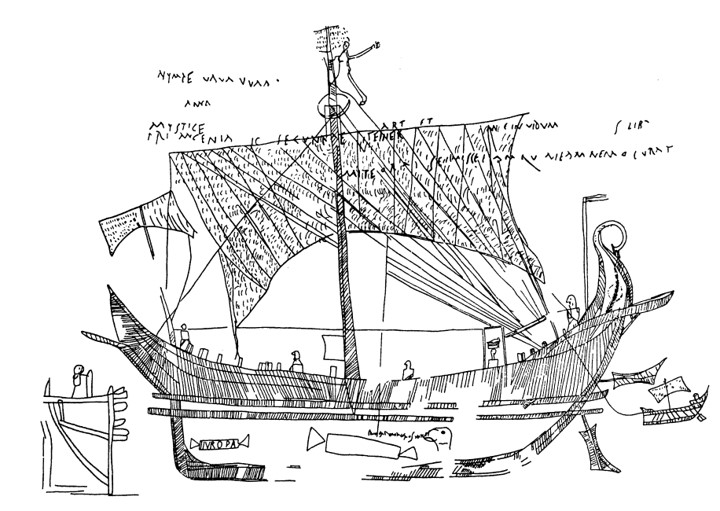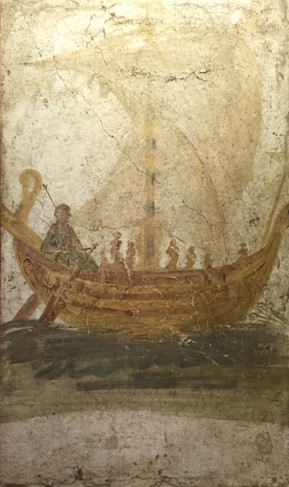 The port and ships were clearly very important to Pompeii and its people. Many graffiti and frescoes of ships have been found in the city, and the patron goddess Venus was believed to have been born from the sea. Sailors prayed to her for protection, and she is often depicted reclining in a seashell, accompanied by water nymphs and dolphins, or even leaning on a rudder (the flat paddle used to steer a boat).